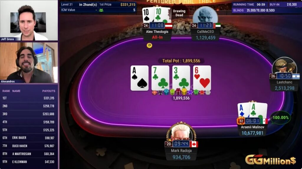 Of the chasing pack, credit must go to Alex Theologis. The subject of the GGPoker documentary Online Poker Millionaires, who bullied his way from being eighth going into play to a fifth-placed finish worth over $125,000.