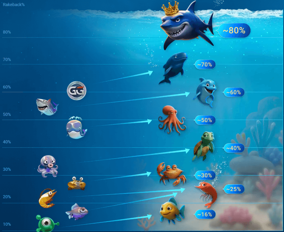 Under Fish Buffet, the maximum cashback tops out at 60% for GGPlatinum members. That’s solid, but Ocean Rewards pushes that ceiling to 80%. For regular grinders, that difference adds up fast.