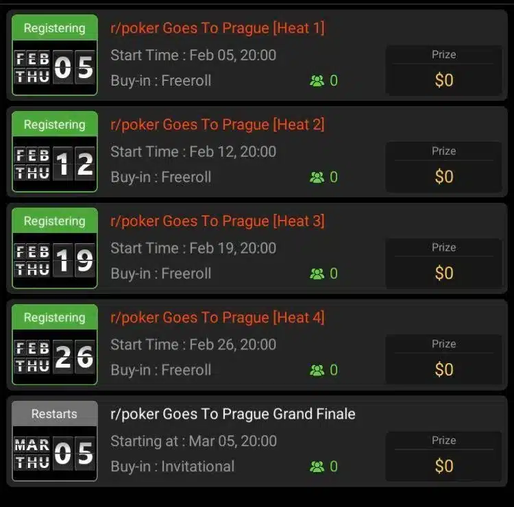 After the Grand Finale on March 5, 2026, the winner will have 72 hours to confirm they can travel and play. If you can’t make it, the prize passes to the 2nd place finisher, then 3rd, and so on until we find someone who can represent r/poker in Prague.