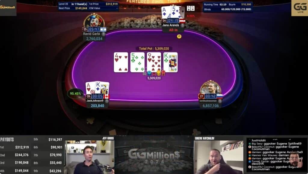 This week’s special guest co-commentator was the Ukrainian-American poker legend Eugene Katchalov, who joined regular host Jeff Gross in the commentary booth for the week’s spectacular action. The GGMillion$ once again had well over $1.3 million in the prize pool, and it saw an exciting topsy-turvy conclusion as some of the world’s best online poker players went for glory.