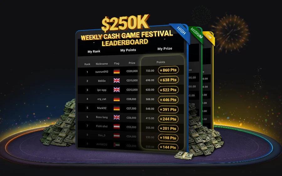Spiel Cash Games und tritt in den Daily- und den $250K Cash Game Festival Weekly Leaderboards an.