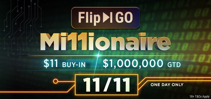 玩家可以通过仅需$0.11的卫星赛进入$11 Flip & Go Millionaire。